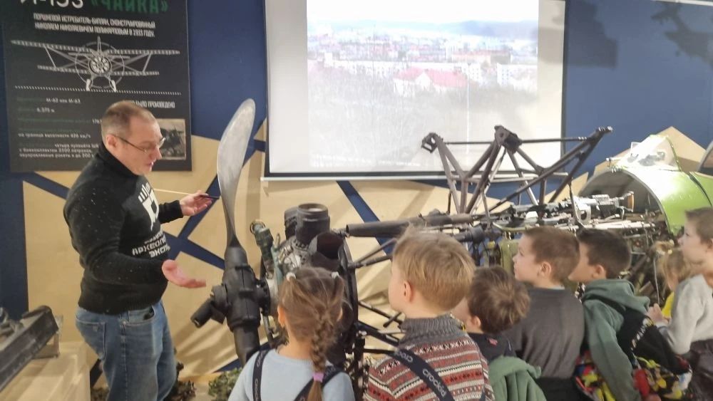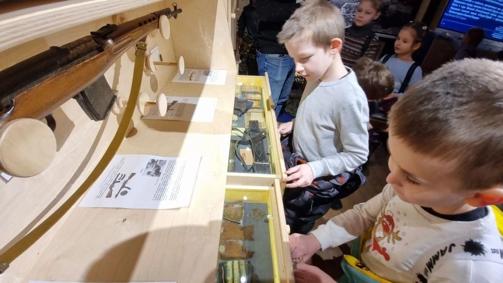 Для малышей провели небольшую, но увлекательную экскурсию: показали модели самолётов, рассказали о лётчиках, дали подержать в руках детали амуниции. Ребята с интересом рассматривали экспонаты, задавали вопросы и наперебой делились впечатлениями.
